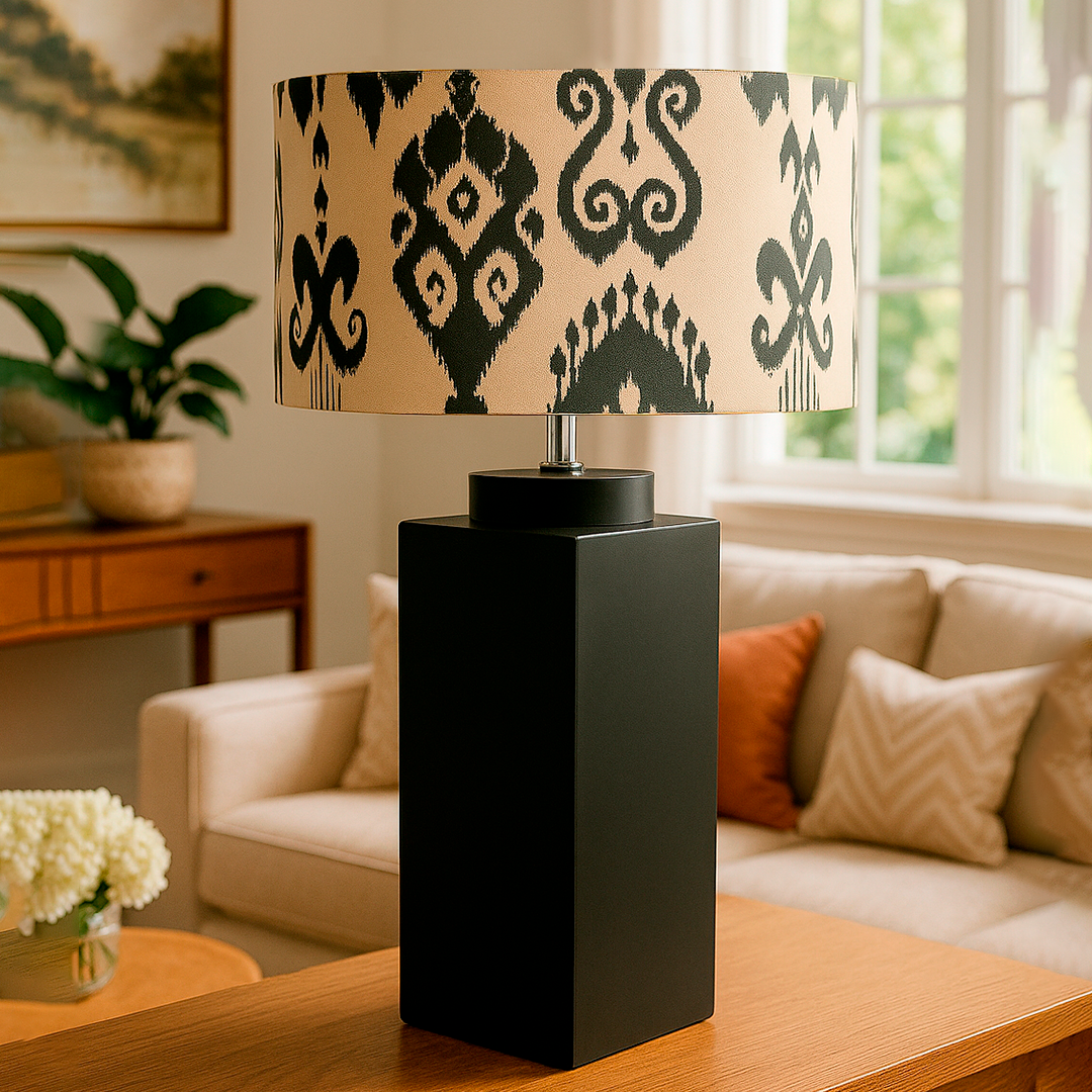 Todas nuestras lámparas son piezas únicas, diseñadas y fabricadas por encargo. Las bases, realizadas por Paz Vial, están elaboradas en cerámica y pintadas a mano. Cada pantalla está confeccionada artesanalmente en algodón, con interior dorado o blanco según el modelo.