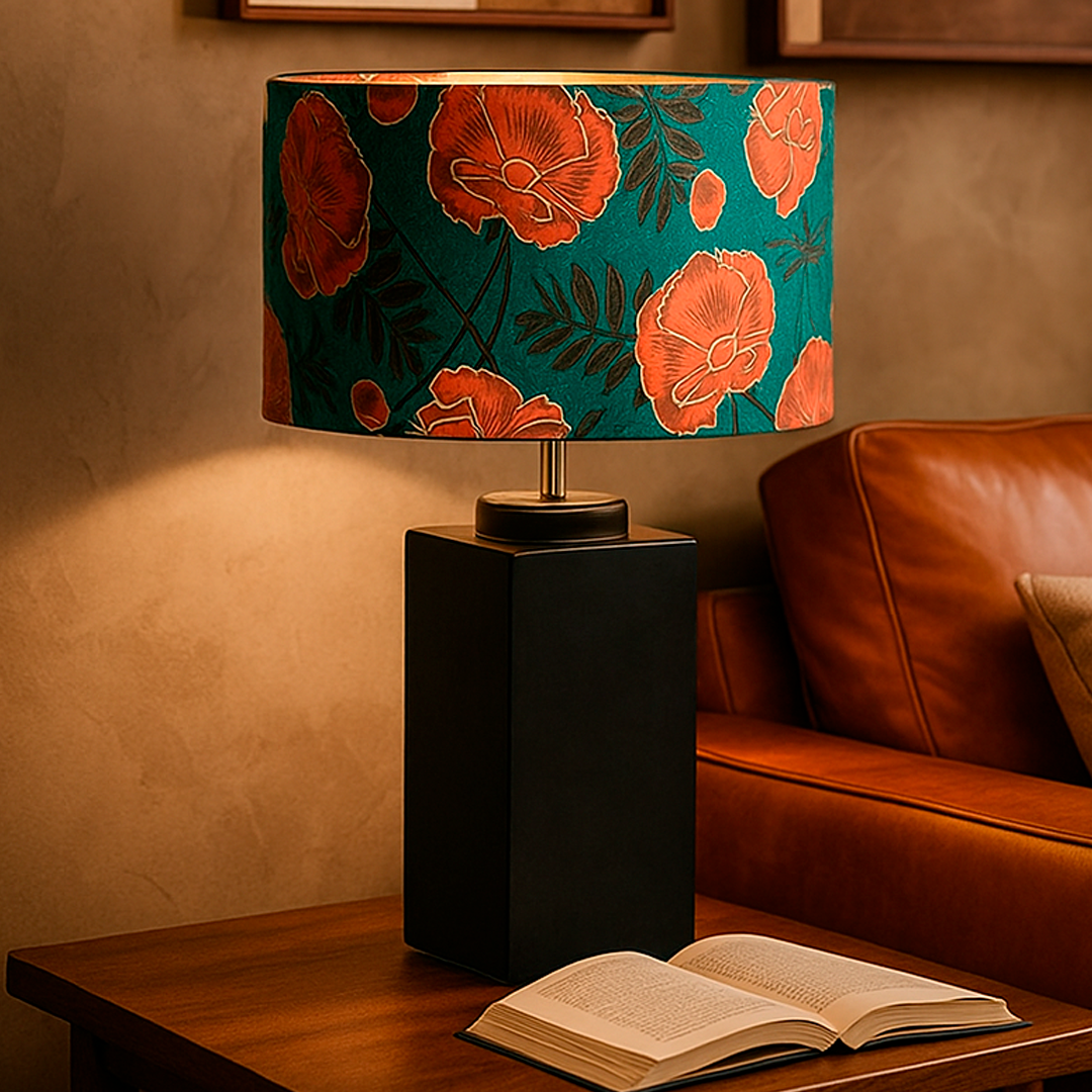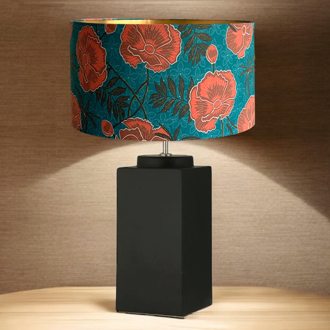 Todas nuestras lámparas son piezas únicas, diseñadas y fabricadas por encargo. Las bases, realizadas por Paz Vial, están elaboradas en cerámica y pintadas a mano. Cada pantalla está confeccionada artesanalmente en algodón, con interior dorado o blanco según el modelo.