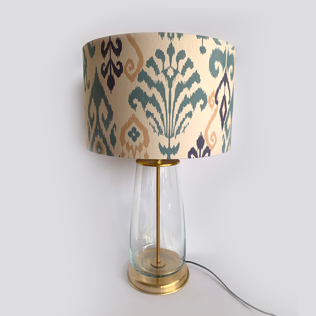 Base de lámpara de vidrio y bronce, acompañada de electrificación completa. Esta lámpara de sobremesa ha sido diseñada y desarrollada en distintas etapas, procesos y talleres, lo que le otorga un carácter único y artesanal.