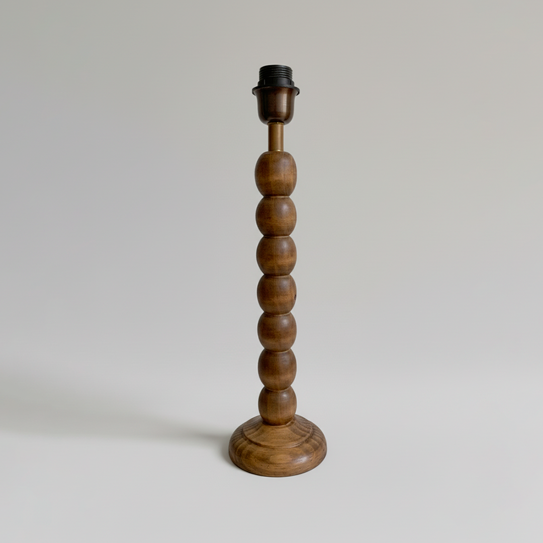 Base de lámpara de madera con diseño, acompañada de electrificación completa. Esta lámpara de sobremesa ha sido diseñada y desarrollada en distintas etapas, procesos y talleres, lo que le otorga un carácter único y artesanal.