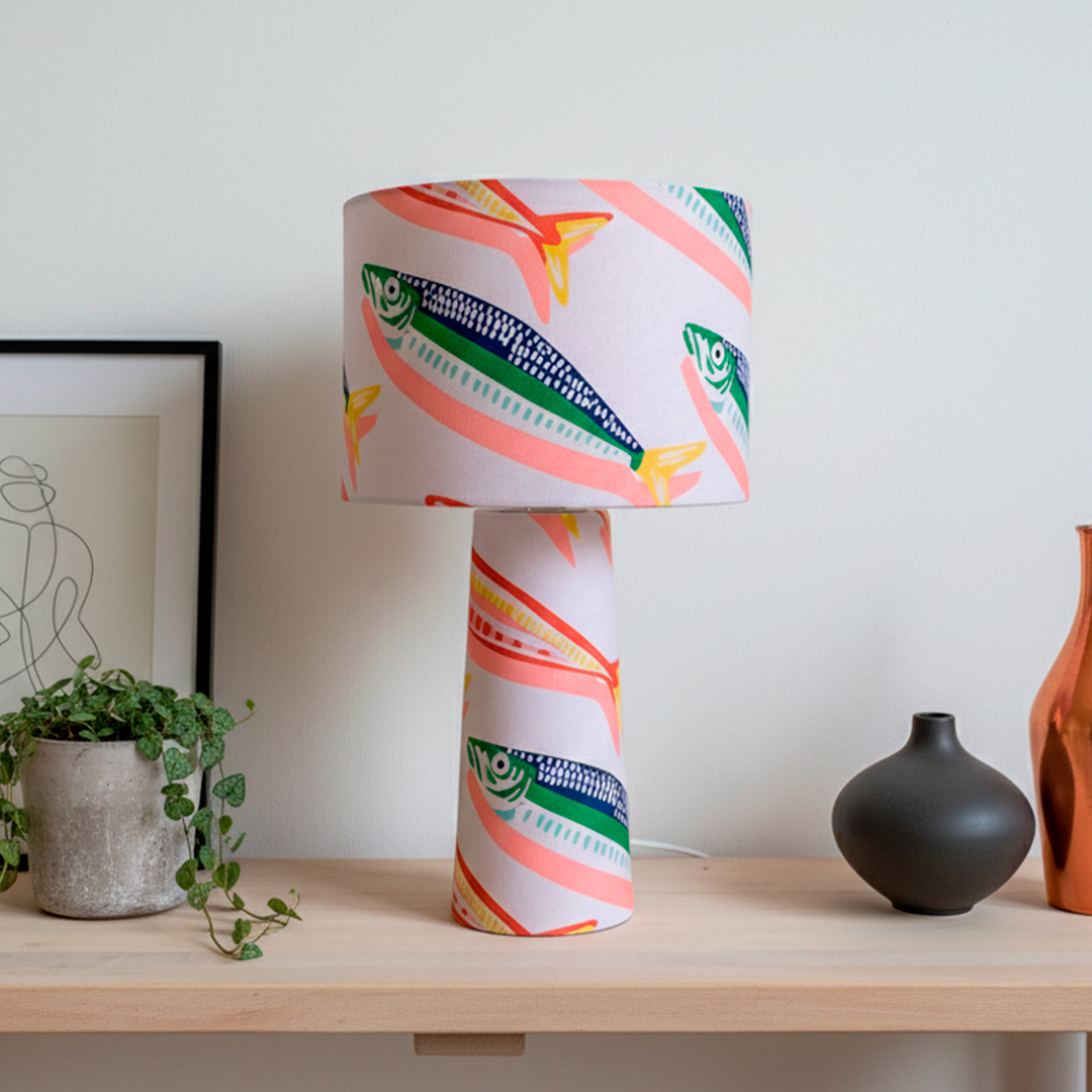 Lámpara de sobremesa confeccionada en género con diseños exclusivo que aportan color,